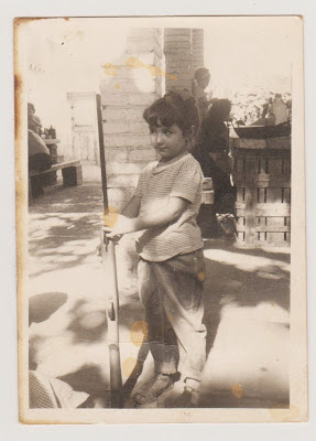 Los Reyes pasando sobre el puente de madera, también desaparecido. Estas figuras tienen muchos años, ya estaban en casa de mi madre cuando era niña. A uno de los camellos tuve que "operarle" una pata y también un paje se quedó sin la mano que sujetaba las riendas -a saber qué habría hecho, ¡juas!-, con lo que también tuve que meterlo en el quirófano.